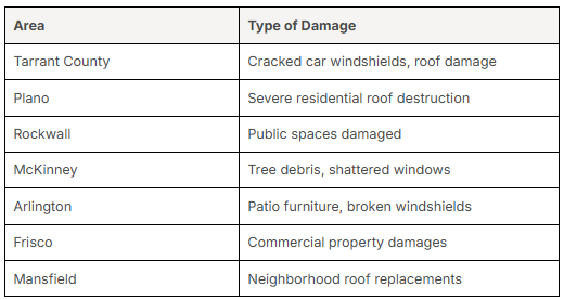 - Areas such as Tarrant County, Plano, Rockwall, and McKinney experienced the worst damage, triggering widespread insurance claims.