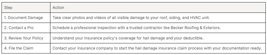 To make the process clear, follow this simple guide. This structured approach helps ensure you cover all your bases before and during the hail damage insurance claim process.